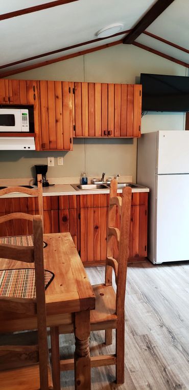 Perfect for a getaway. They come fully furnished with all linens, Pots and Pans, Cooking and eating utensils, Plates, Glasses, Coffee maker Microwave, TV in living area and bedroom, Towels, Washcloths. Ceiling fans in living room and bedroom. All that is needed is their clothes and personal hygiene products. Sleeps 2 adults. No Pets allowed in Rentals.